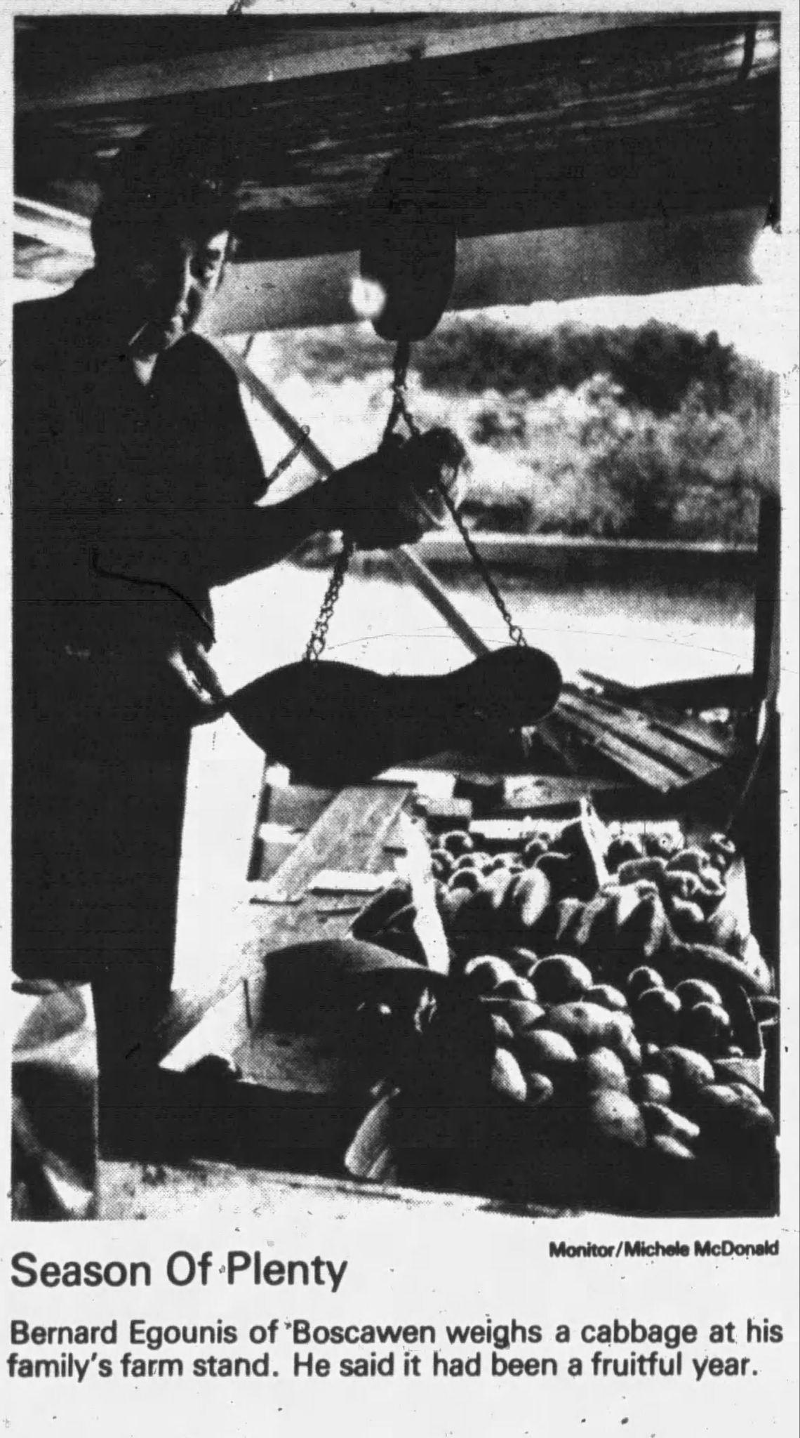 - “Funeral Notice: Bernard J. Egounis.” Concord Monitor, Aug. 17, 1983.